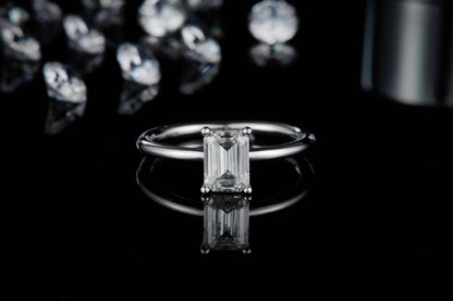 Emerald Cut Solitaire Moissanite Engagement Ring