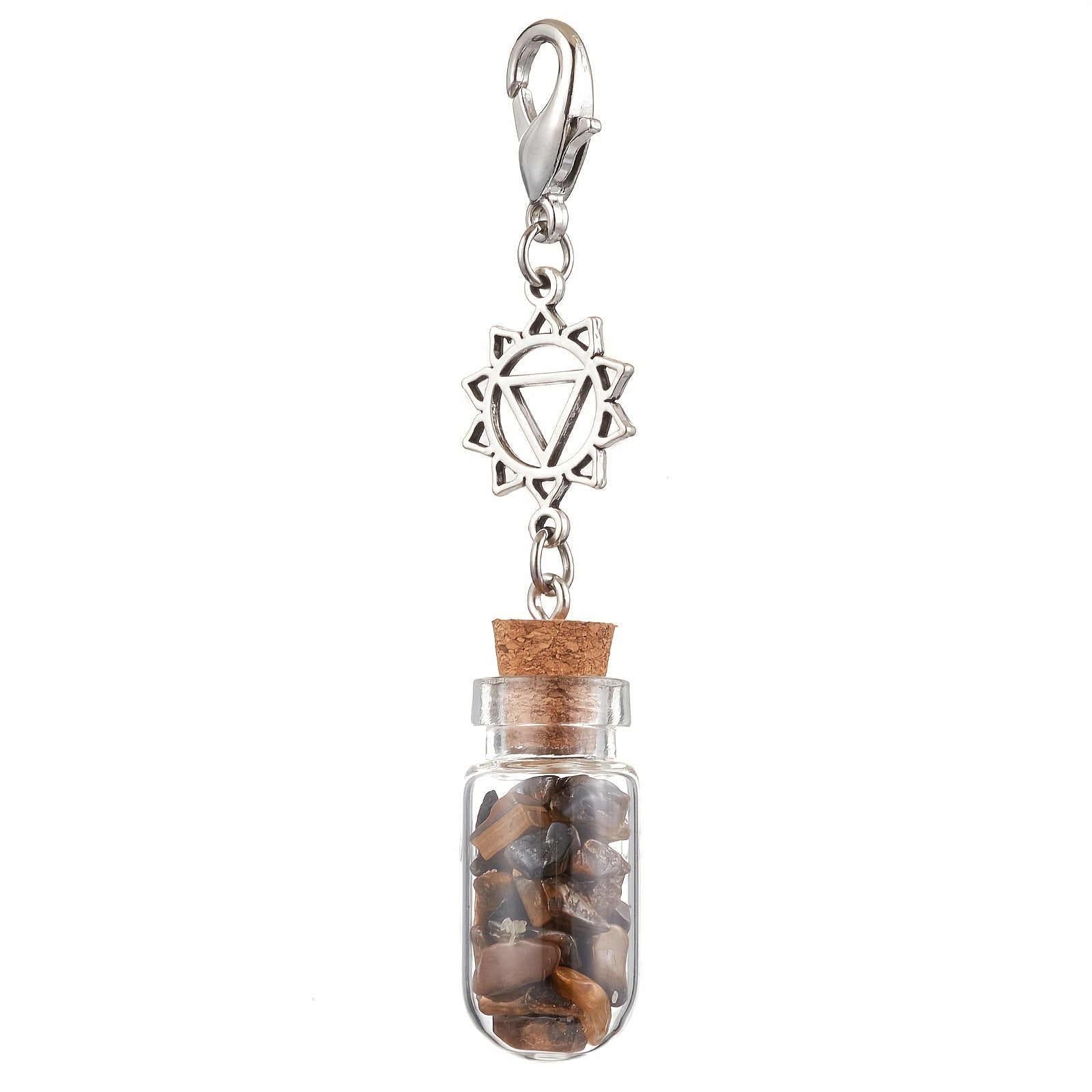 Harness the healing energy of the chakras with this 7 Chakra Crystal Healing Bottle Keychain Set – a beautifully crafted collection of glass vials filled with natural gemstone chips, each representing one of the seven chakras. Adorned with sacred metal chakra symbols and finished with a secure lobster clasp, these keychains are perfect for spiritual protection, aura cleansing, meditation, and energy alignment on the go.