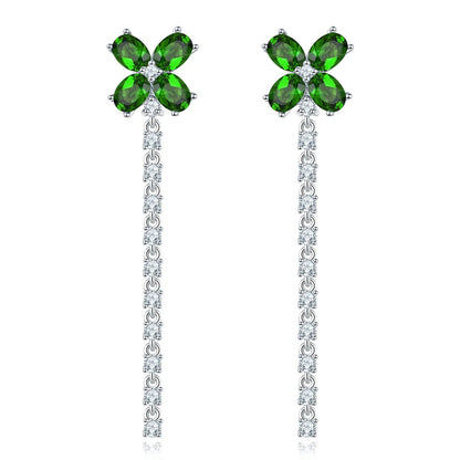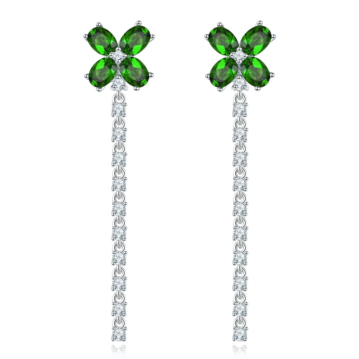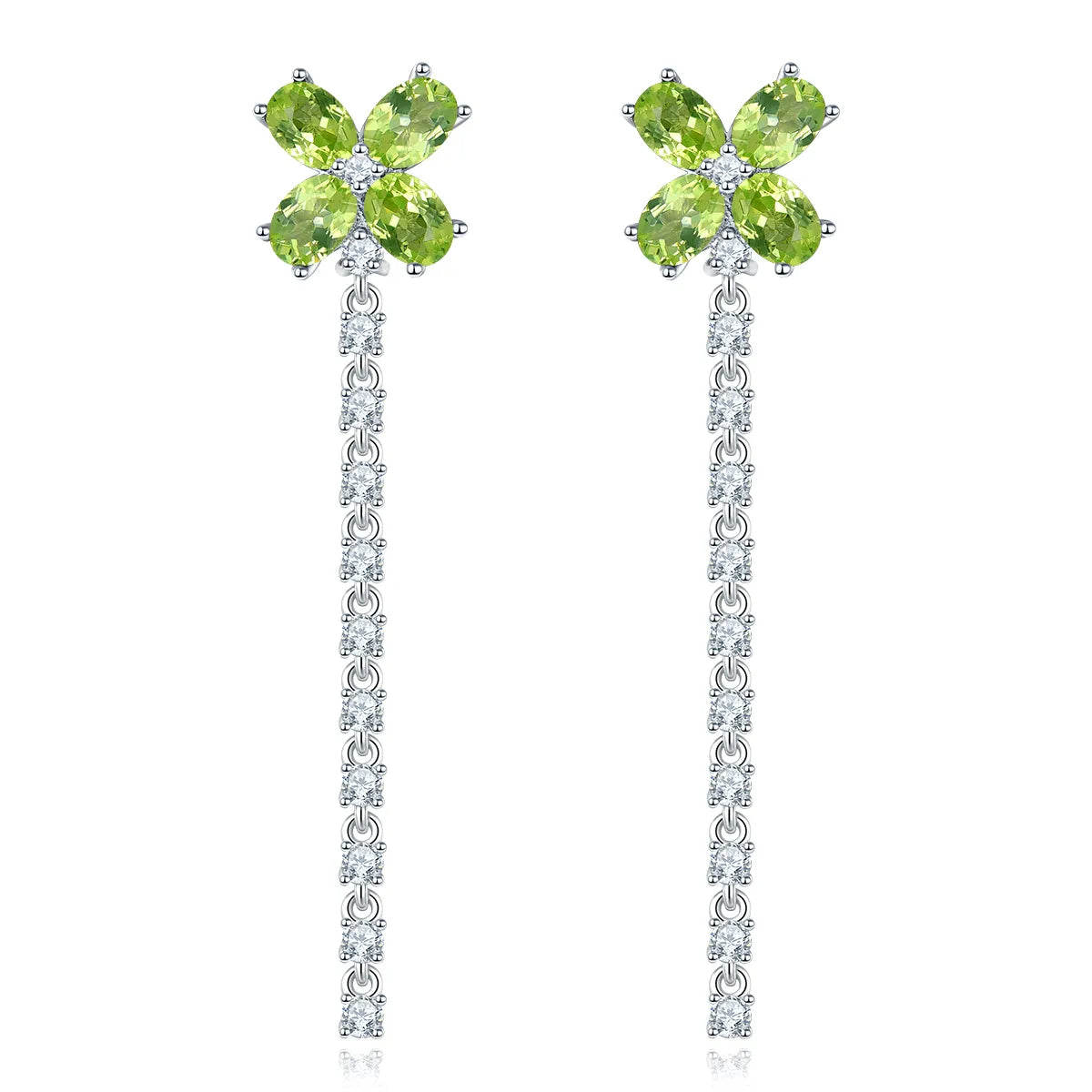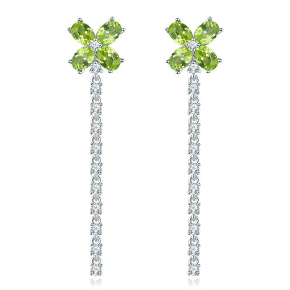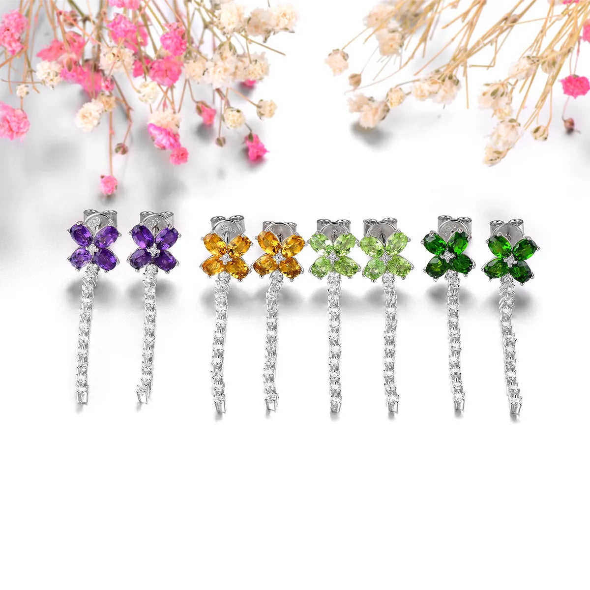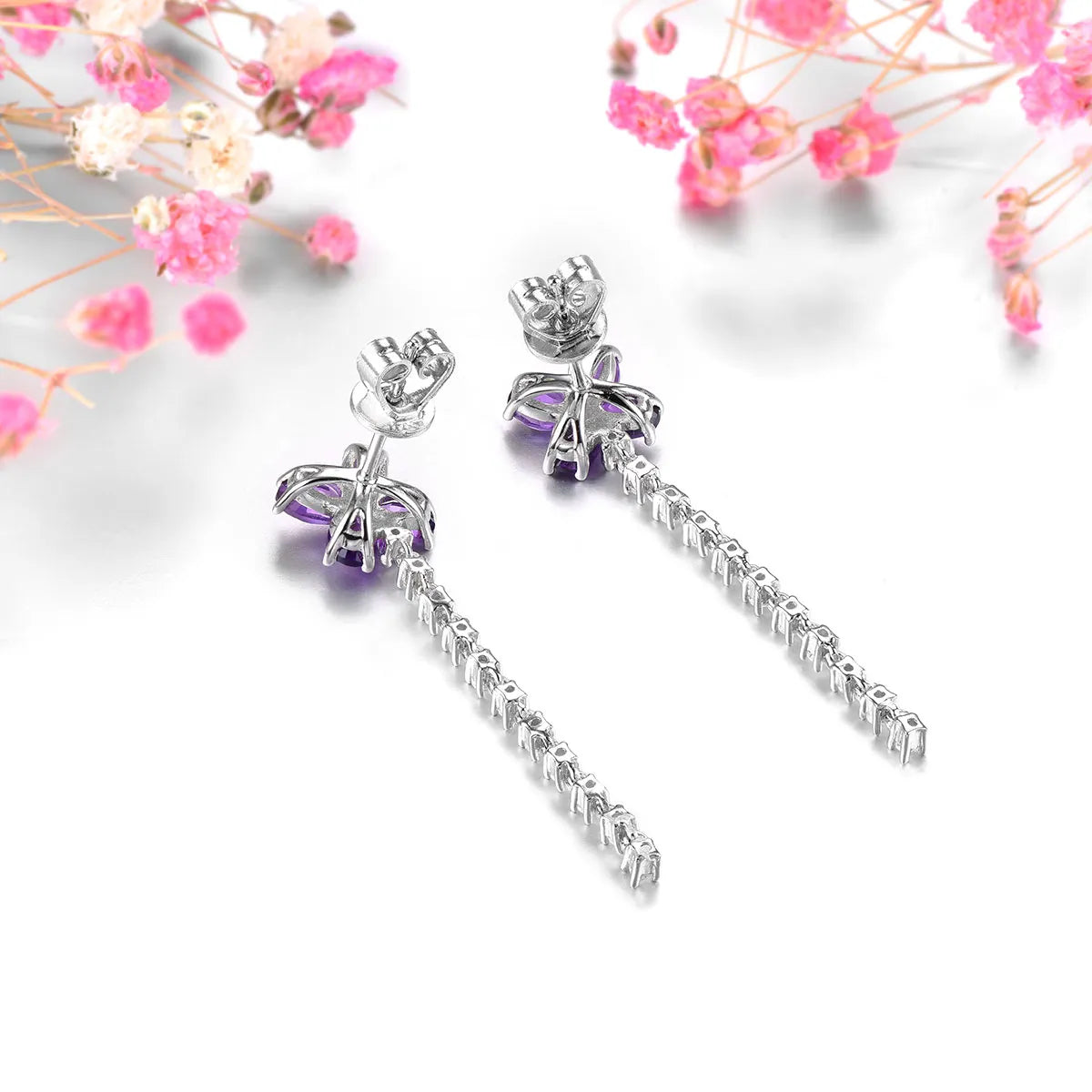 Indulge in luxury with our elegant Four Stone Dangle Earrings in 925 Sterling Silver. Featuring vibrant Oval Cut gemstones in a color palette of purple, green, and yellow, these earrings are perfect for any occasion!