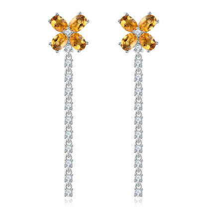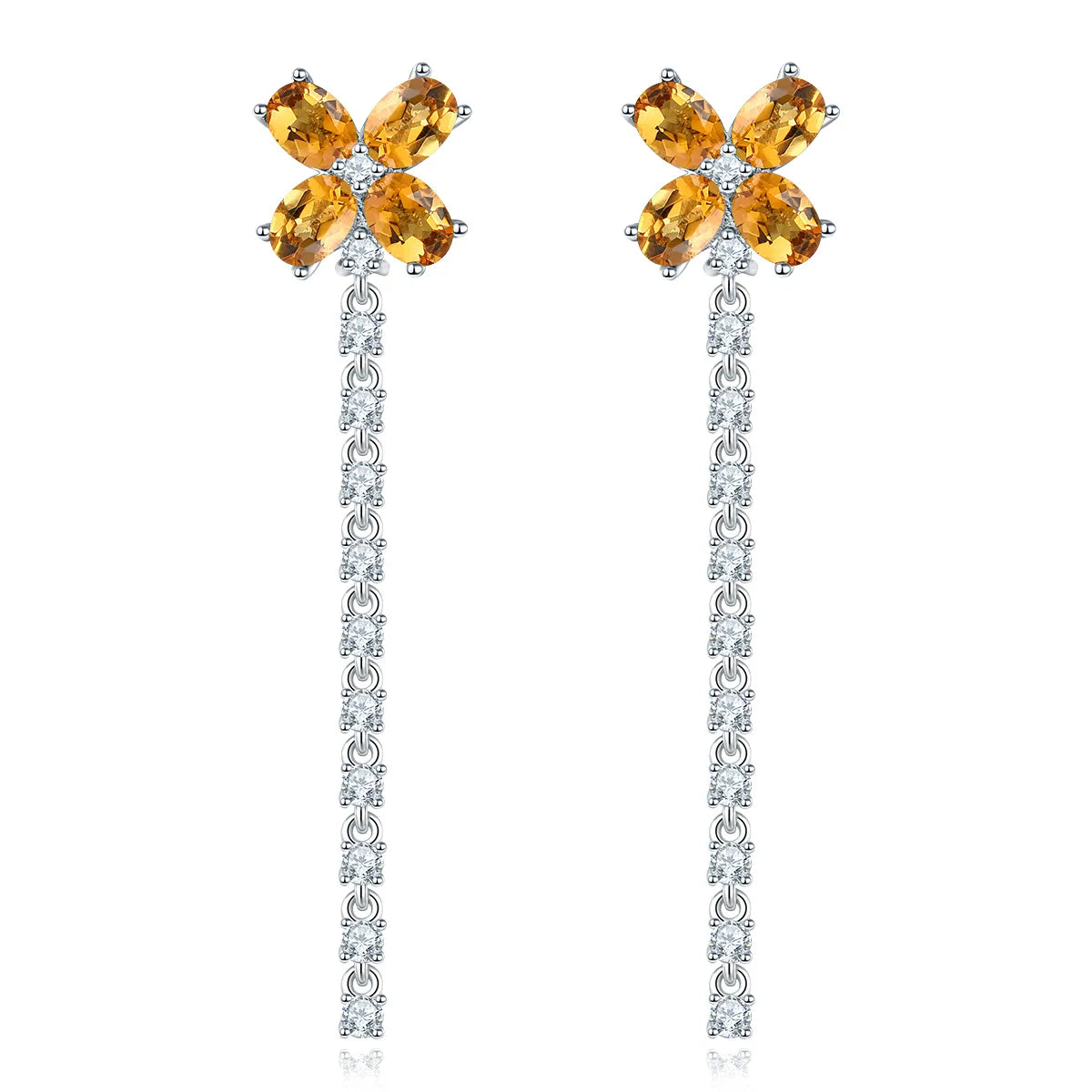 Four Stone Oval Cut Natural Gemstone Dangle Earrings - Your Choice of Gemstone