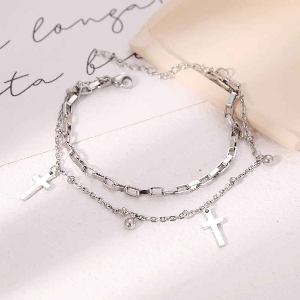Titanium Cross Charm Bracelet