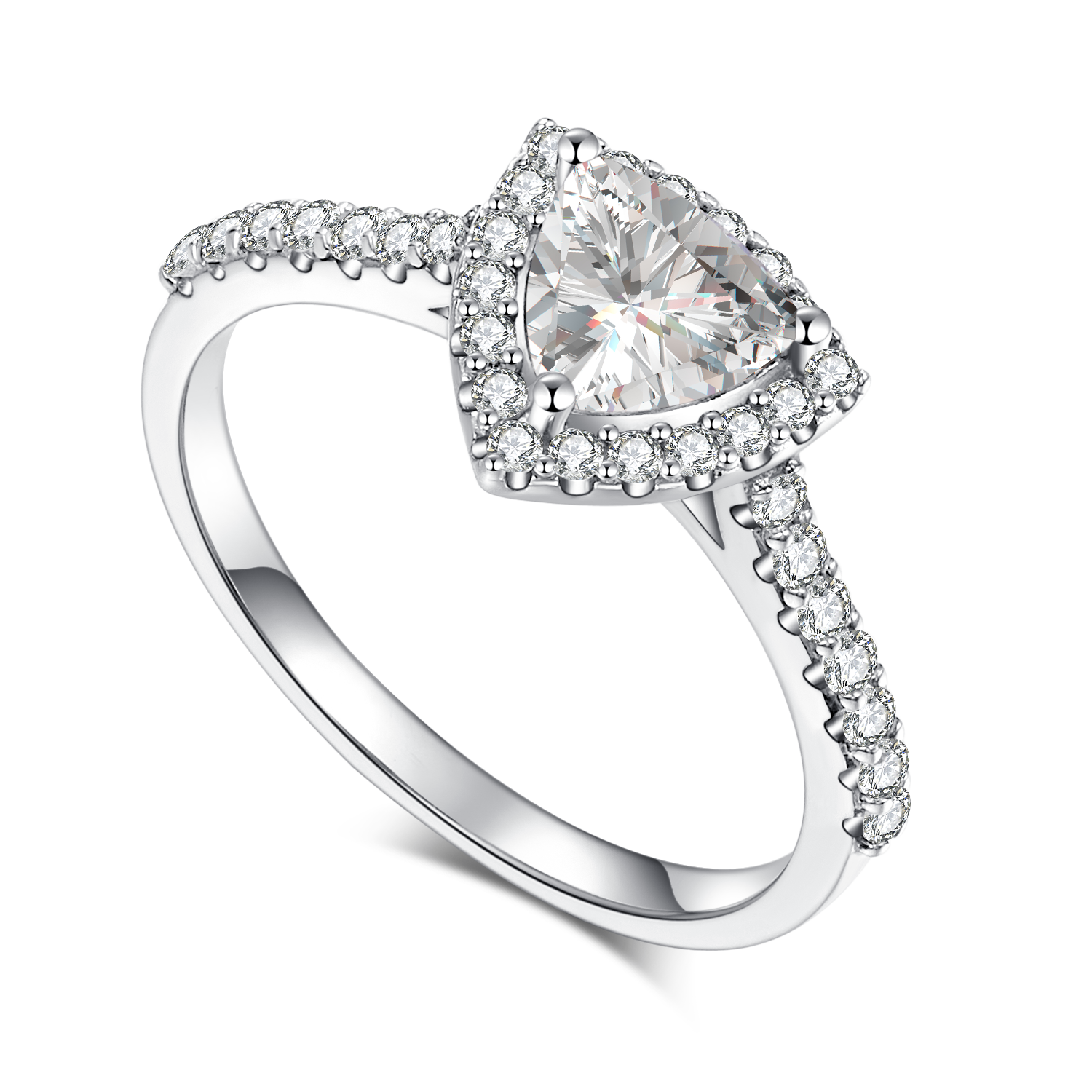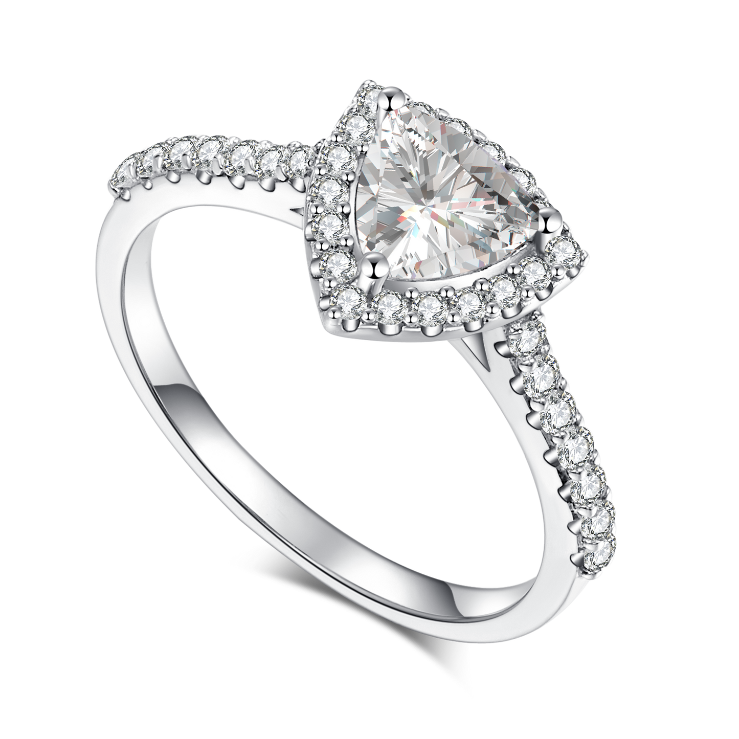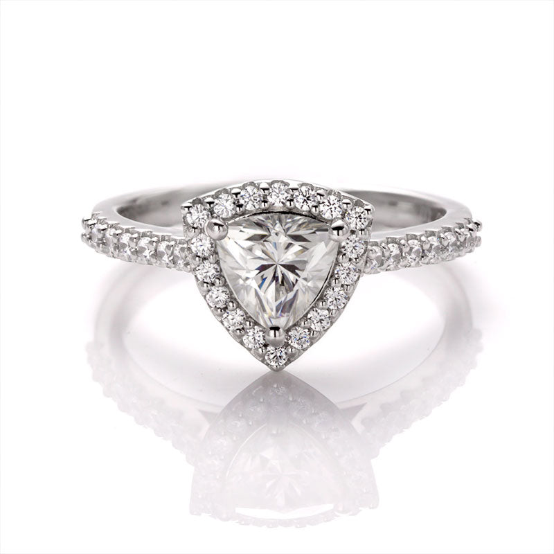 Anel Halo Moissanite Clássico com Corte Trilhão
