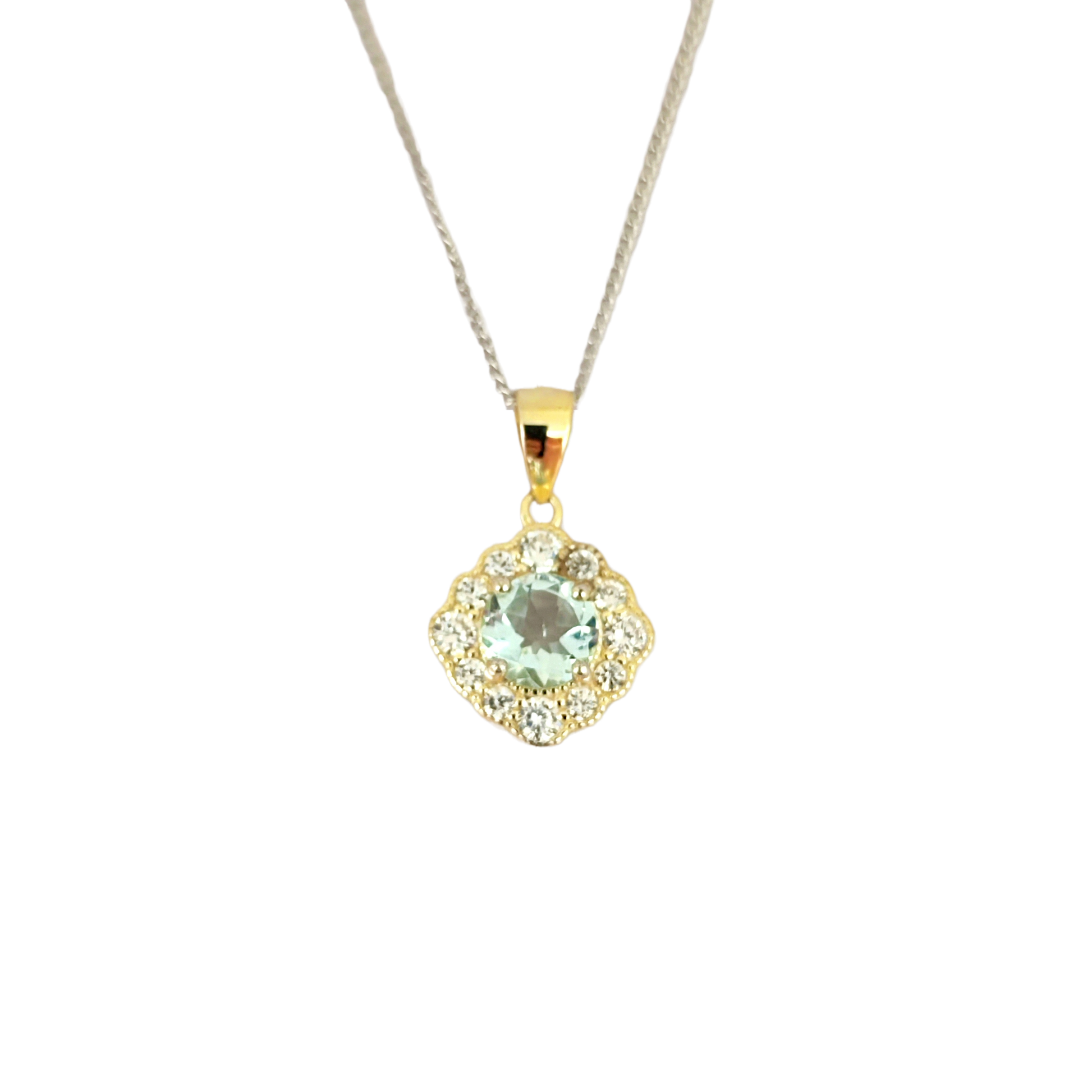 Colar com pingente de halo de água-marinha de corte redondo de 6 mm