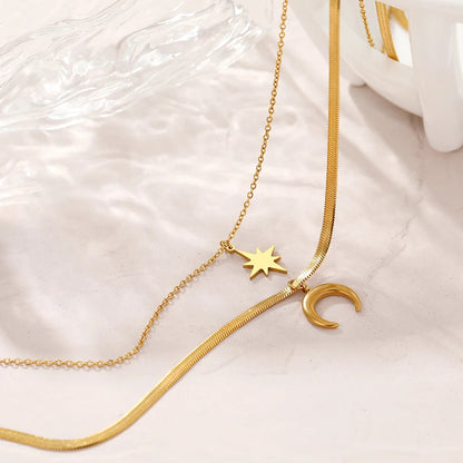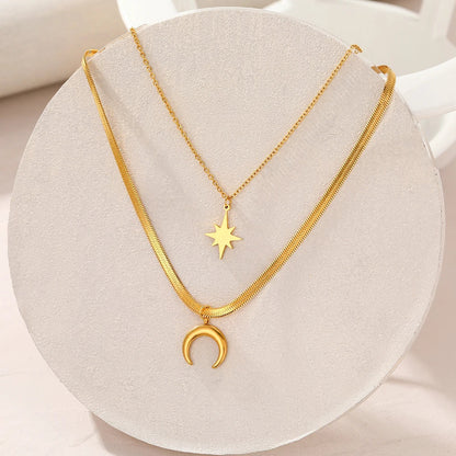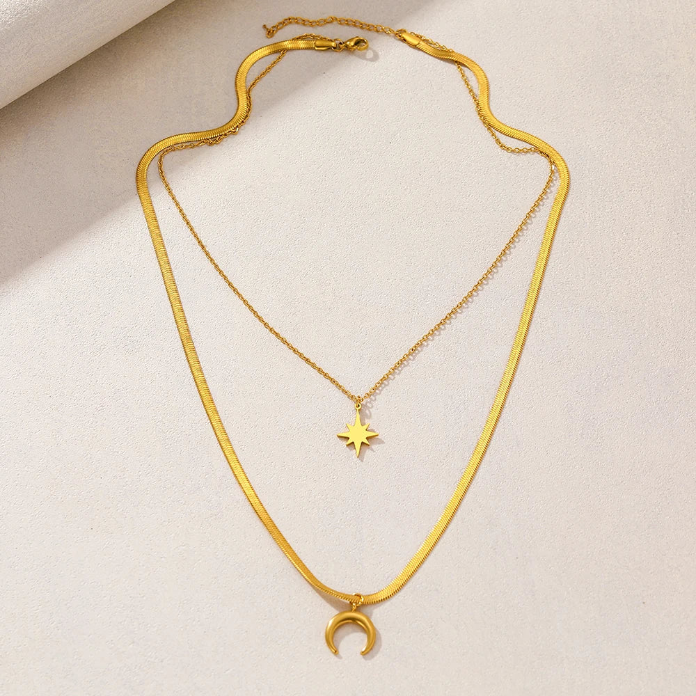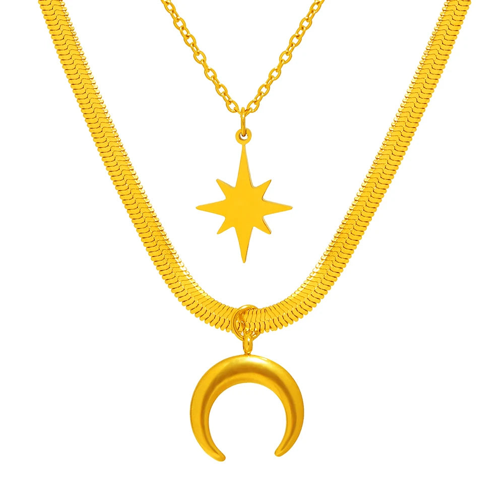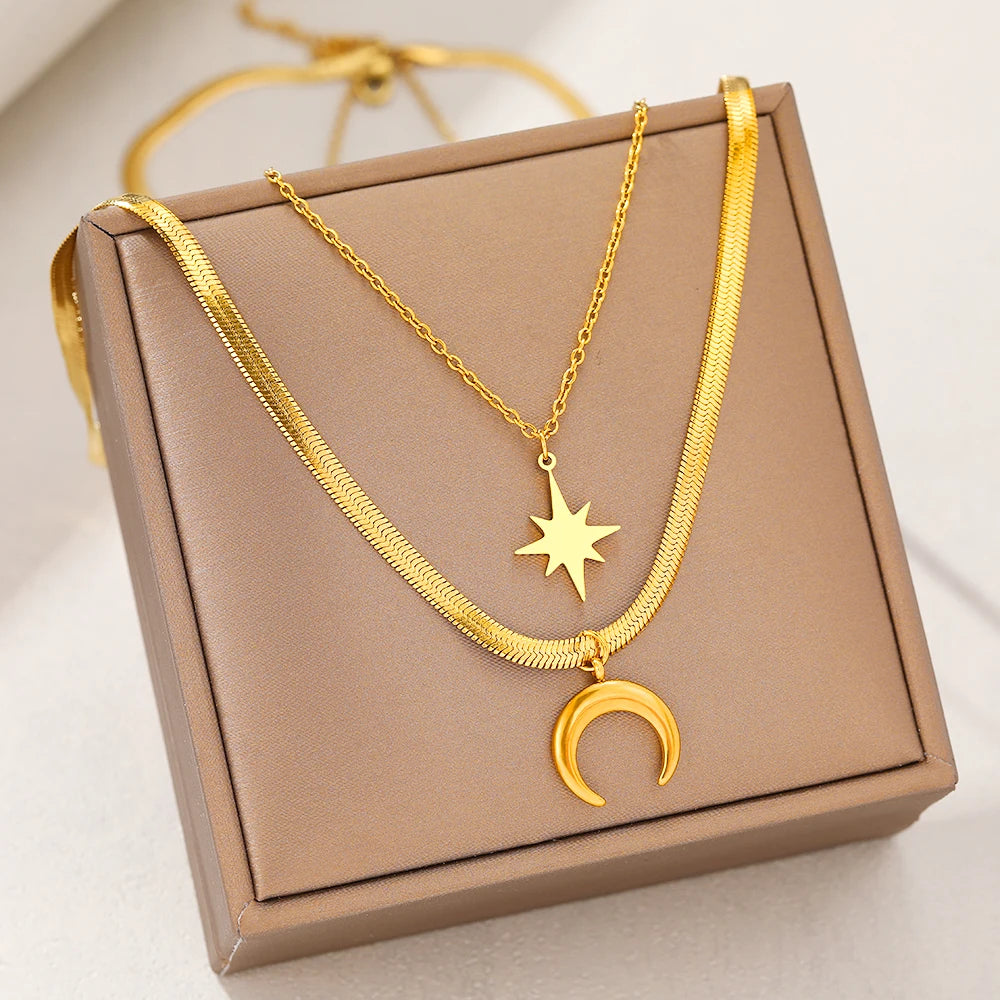 Colar com pingente de espinha de peixe em titânio lua e estrela