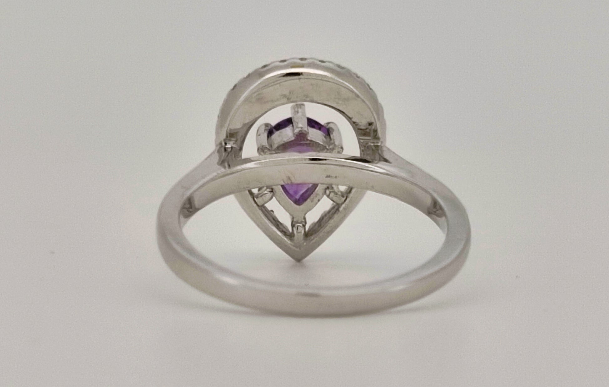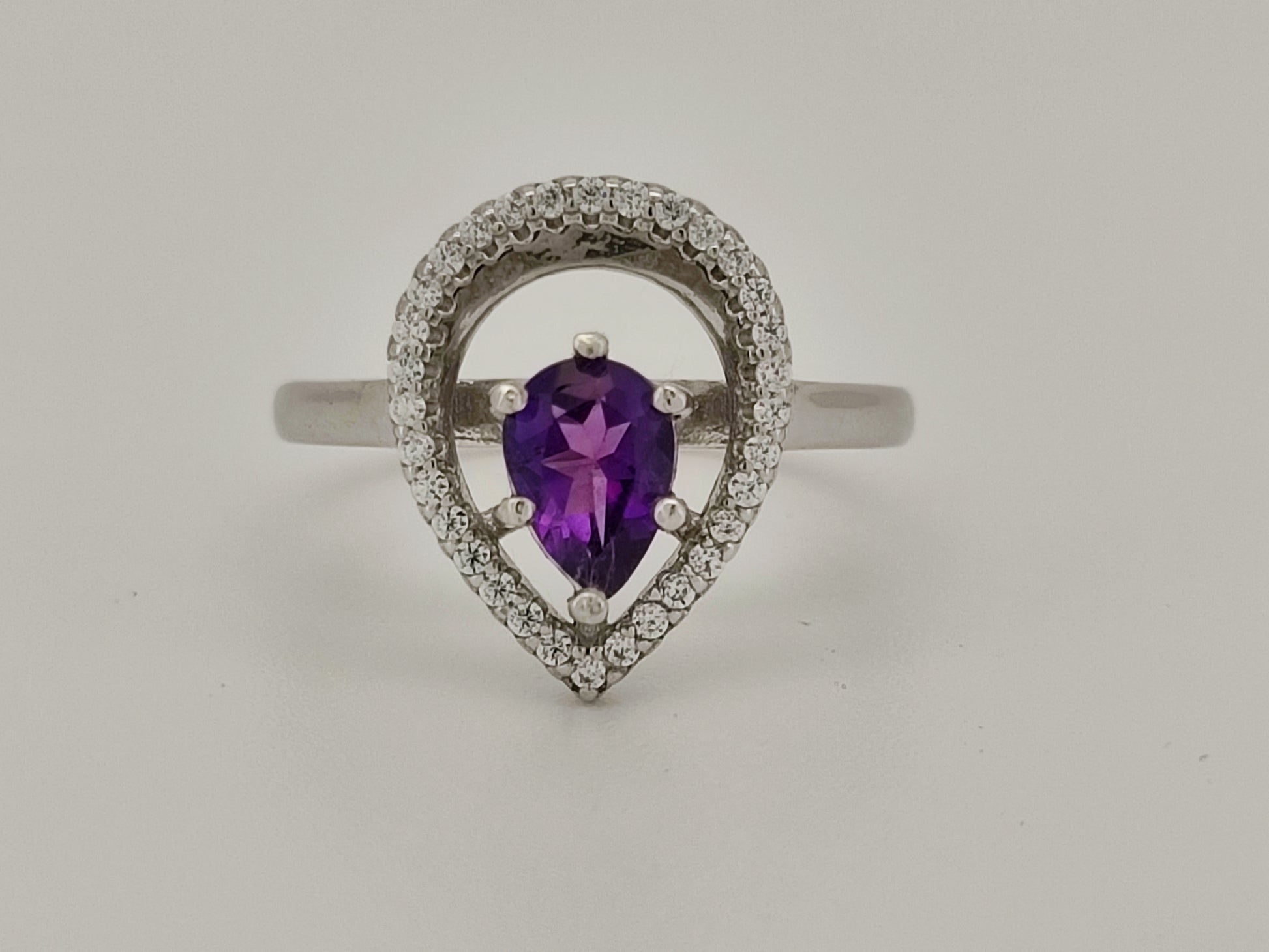 Anel Halo de Ametista com Corte de Pêra 7x5mm